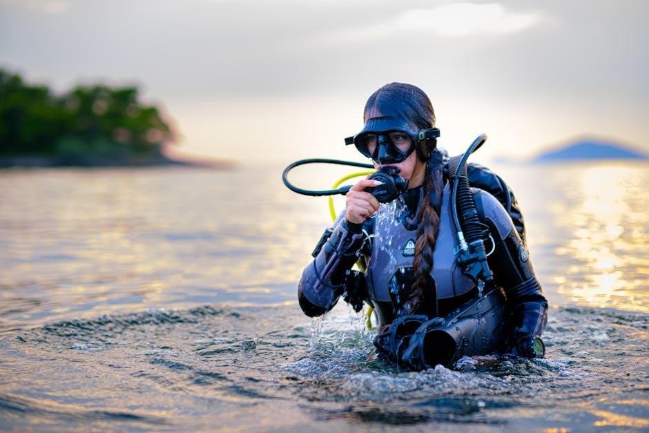 Divers must verify proper equipment function, secure tank valves, confirm regulator operation, and ensure adequate air supply. Buddy checks are paramount, with each diver independently confirming the other’s gear. Thorough pre-dive checks minimize risks and promote a secure, enjoyable underwater experience, as outlined within the manual’s safety protocols.