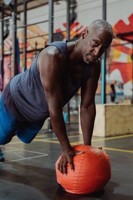 Adjusting push-up difficulty ensures a challenging yet achievable workout for all fitness levels. Beginners can start with knee push-ups or wall push-ups to build strength. As progress is made, transition to standard push-ups; For intermediates, introduce variations like incline or decline push-ups. Advanced individuals can incorporate weighted vests, plyometric push-ups, or single-arm push-ups. Continuously assess your fitness level and modify exercises to avoid plateaus. The key is to gradually increase intensity while maintaining proper form and technique. This approach ensures steady improvement and prevents overtraining. Stay adaptable to your body’s capabilities and goals. Consistency is key to achieving lasting results.